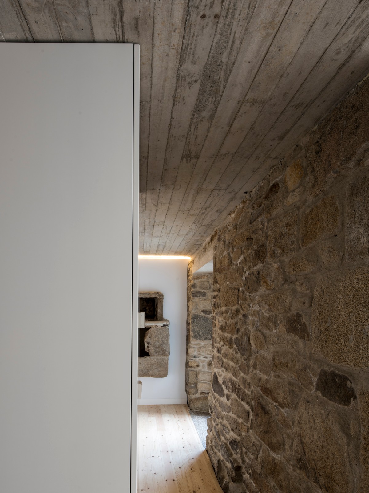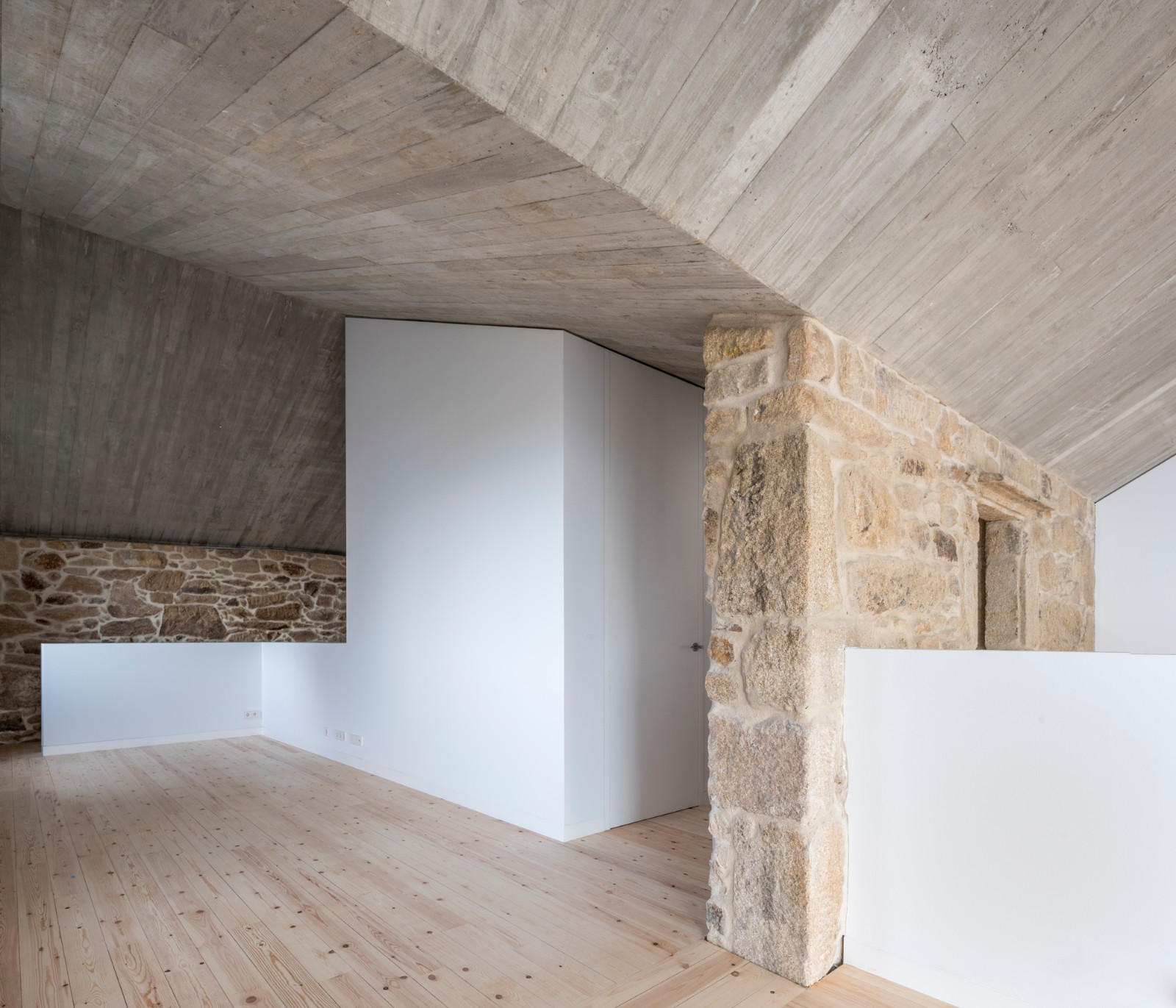 此房屋位于一个陡坡上,最初由两个相连的部分组成,这与传统的加利西亚住房设计类似,即主空间是马厩和厨房:带有烤箱和冷却石,但随着时光流逝,添加了第三部分,并进行了一系列更改装修,改变了原有的民族特色。