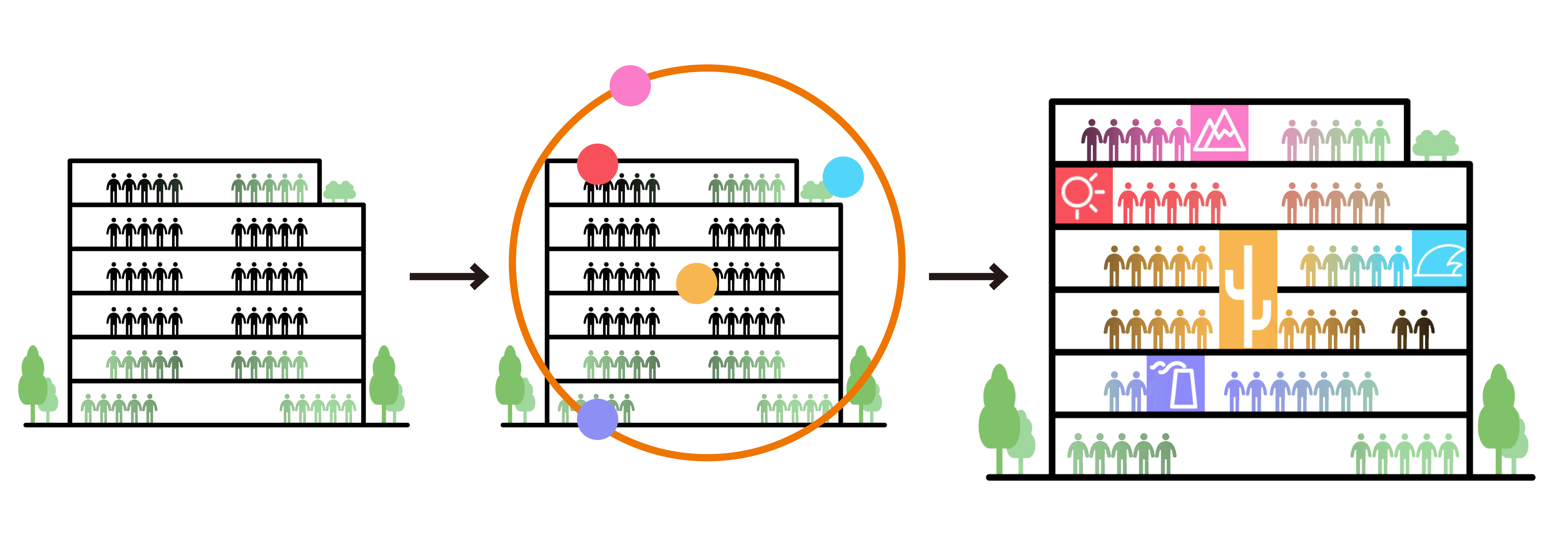 同时作为杭州市西湖区老楼宇、老商圈改造的首批重点项目,我们希望通过设计,使中电·万谷项目滴水涟漪,成为片区内的亮点。