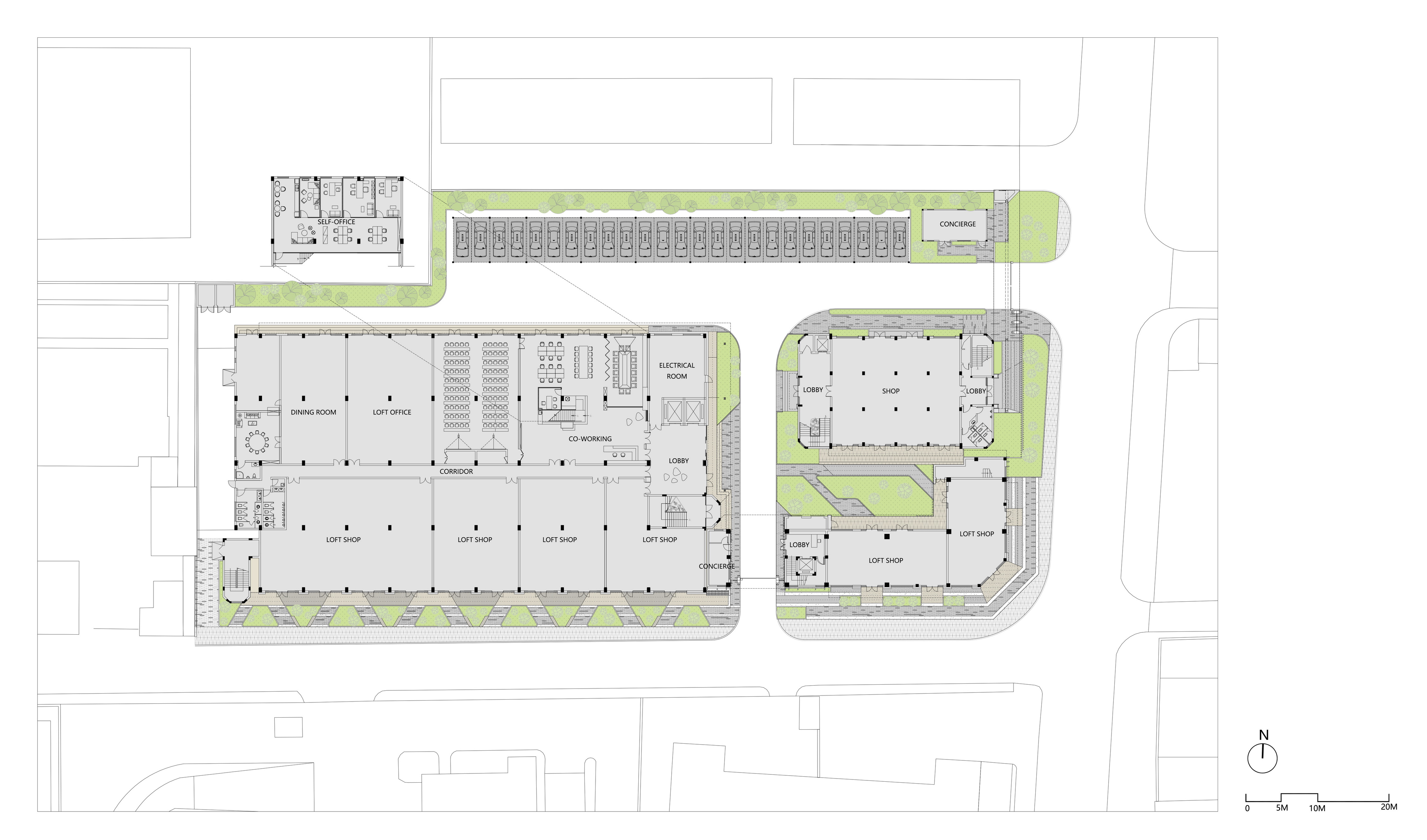 项目设计之初确定了园区“生态、人文、科技”的主题,强调人与自然,工作与环境的和谐发展。因而如何高效使用有限的空间成为了设计的重中之重。