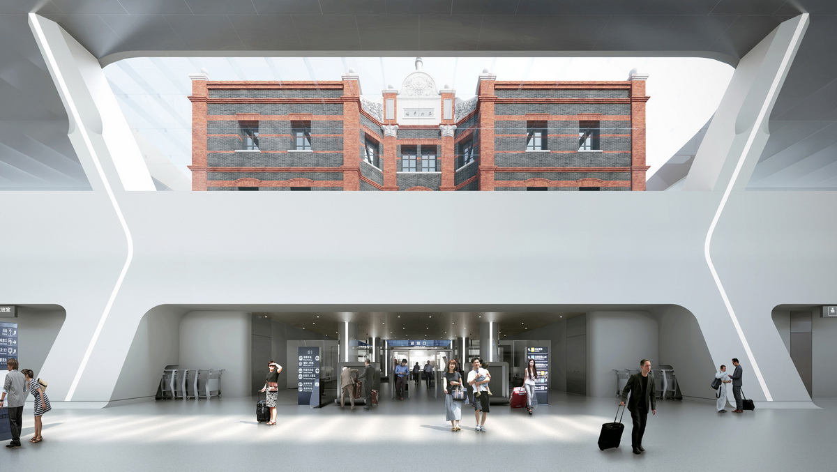 △在地下一层的新建站房室内可见百年前历史建筑风貌