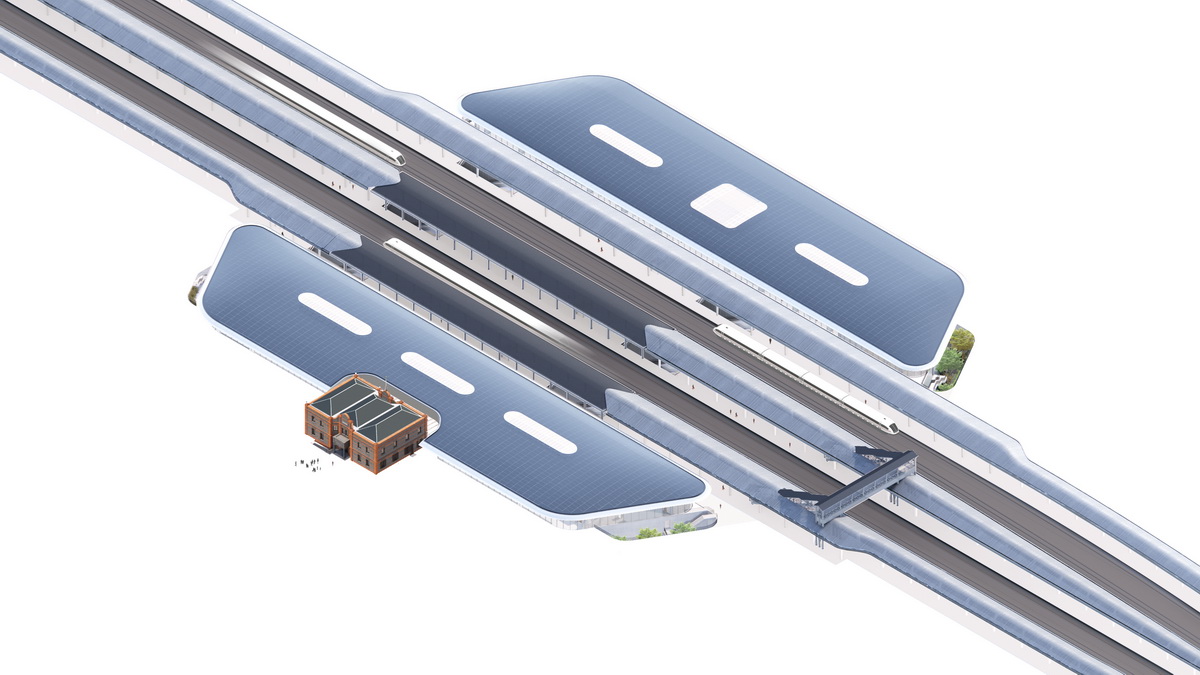 新建站房的屋顶全部使用太阳能光伏板,为可持续发展作出努力。