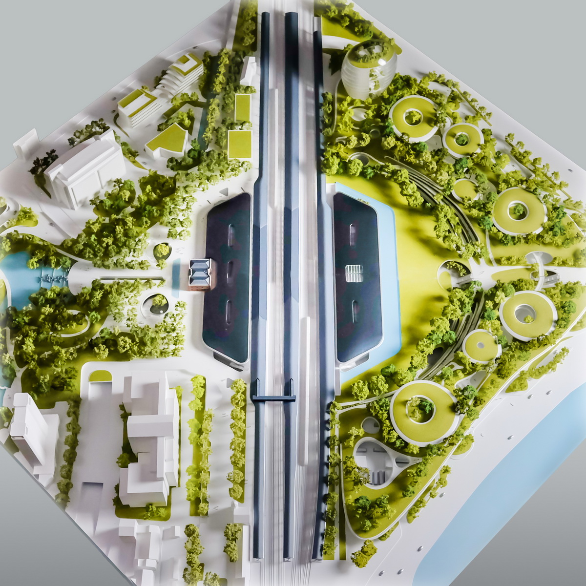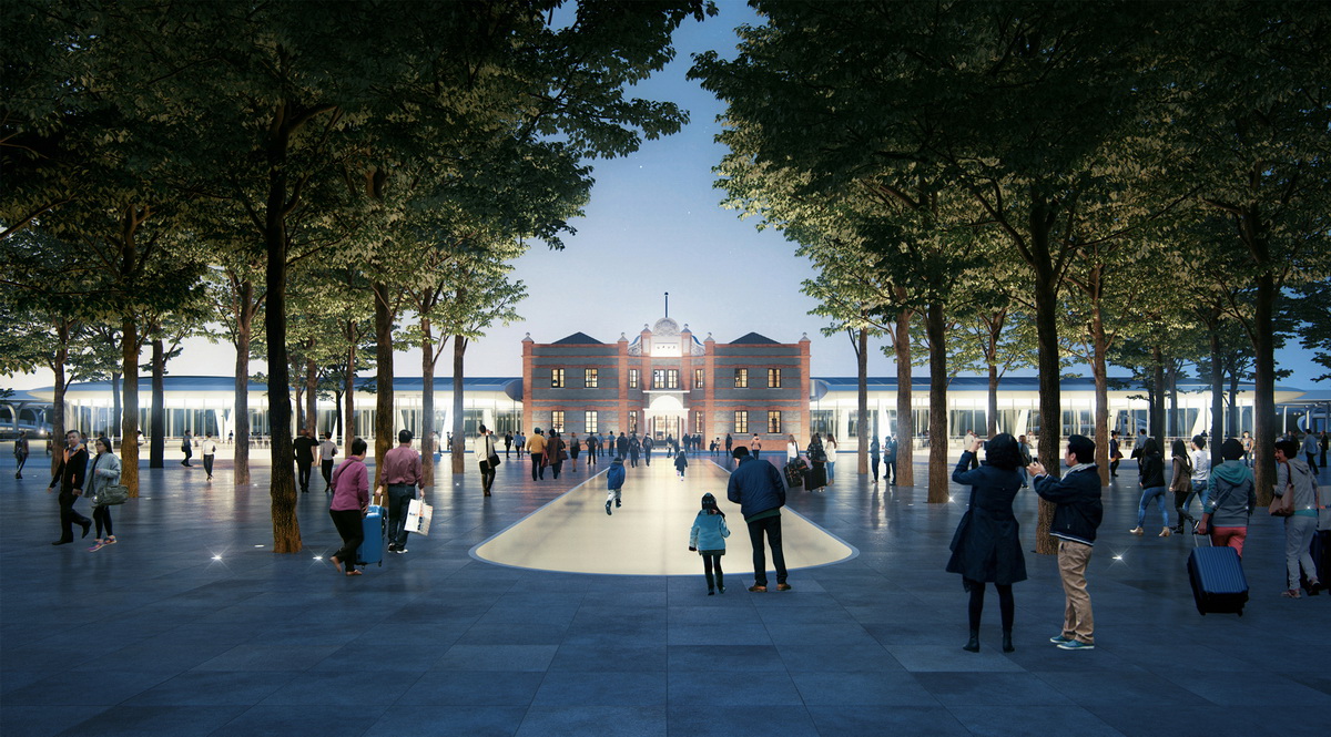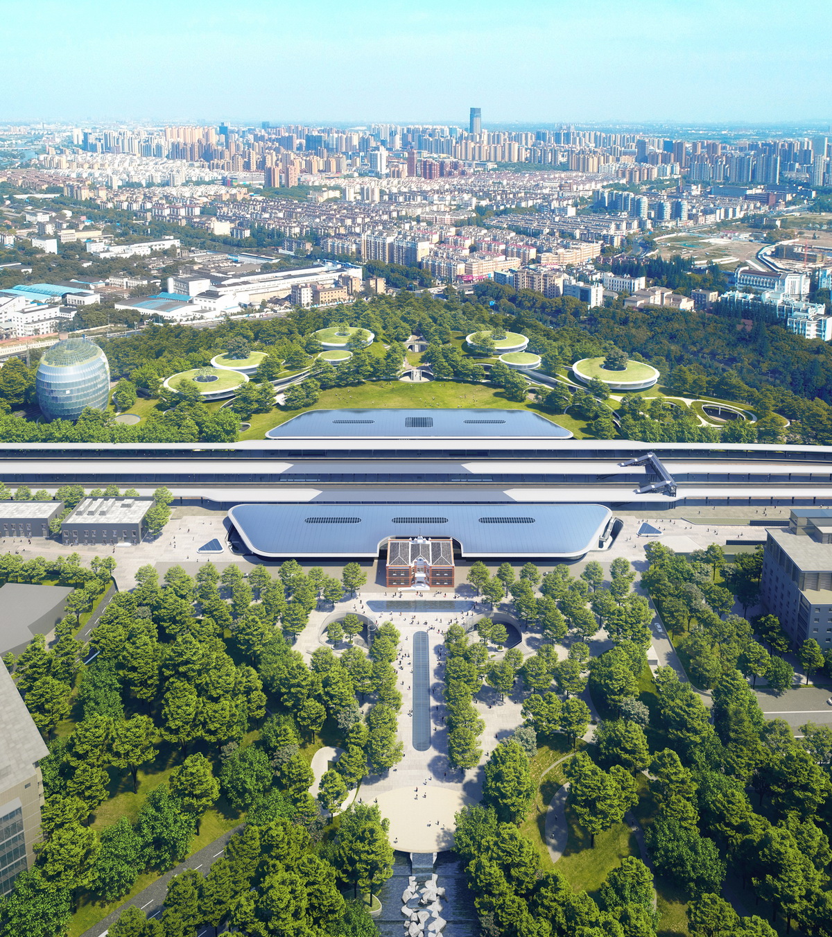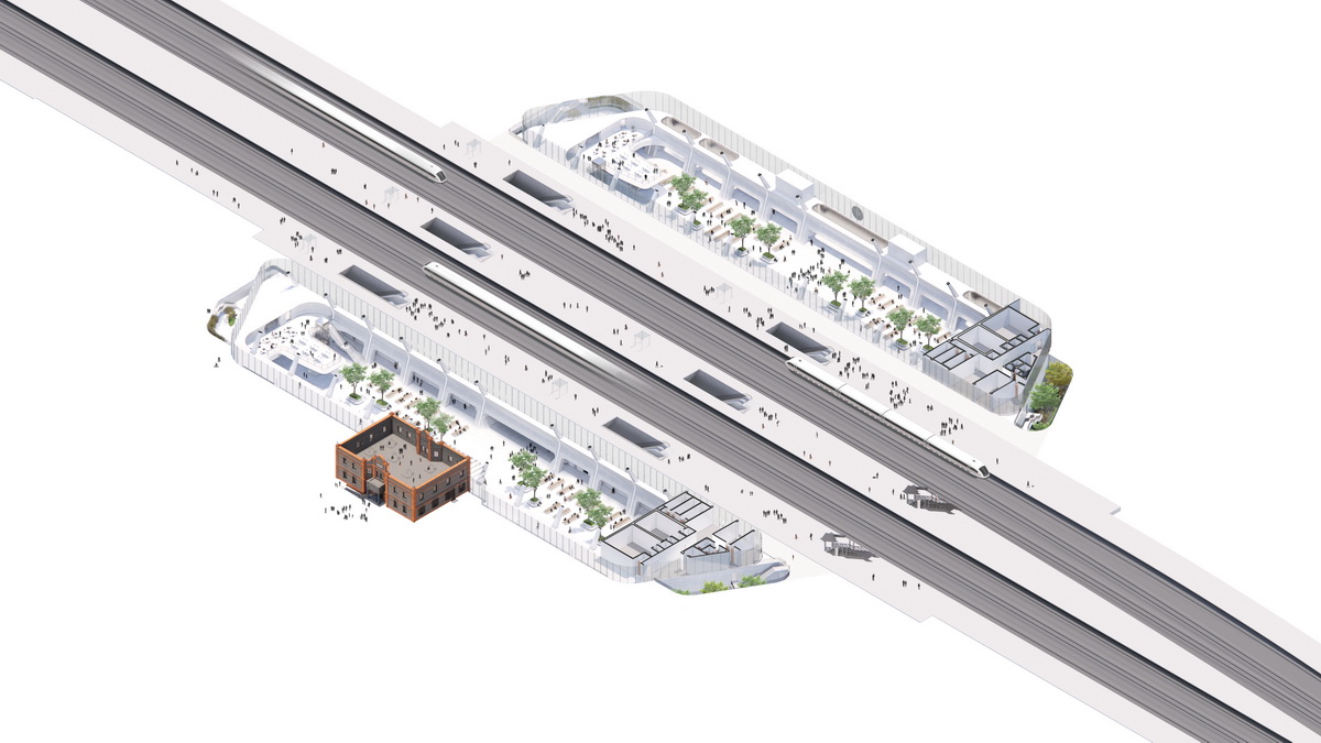MAD的方案充分考虑嘉兴的历史和人文特点:遵循历史资料对老站房进行1:1复原;主要交通和商业功能收置于地下,新站房引入自然光,明亮高效,尺度宜人舒适;地面腾出大量的公共空间,将自然还给市民和旅客,给嘉兴带来一个绿色的城市中心,一个“森林中的火车站”。