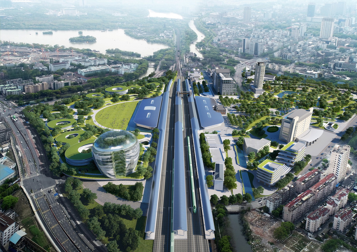 △ 嘉兴火车站改造后效果图,从北向南