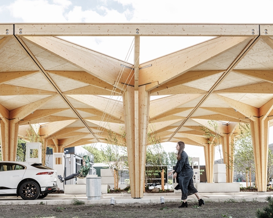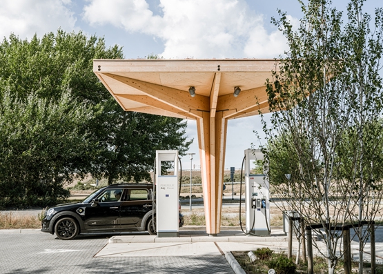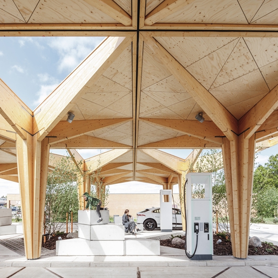 位于丹麦中部的弗雷德里西亚Fredericia)和克努德肖夫(Knudshoved)两座城市的充电站都是用同一个模块化的木材树状结构建造的。