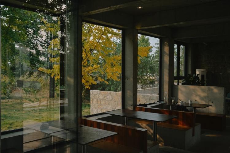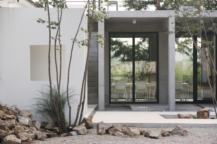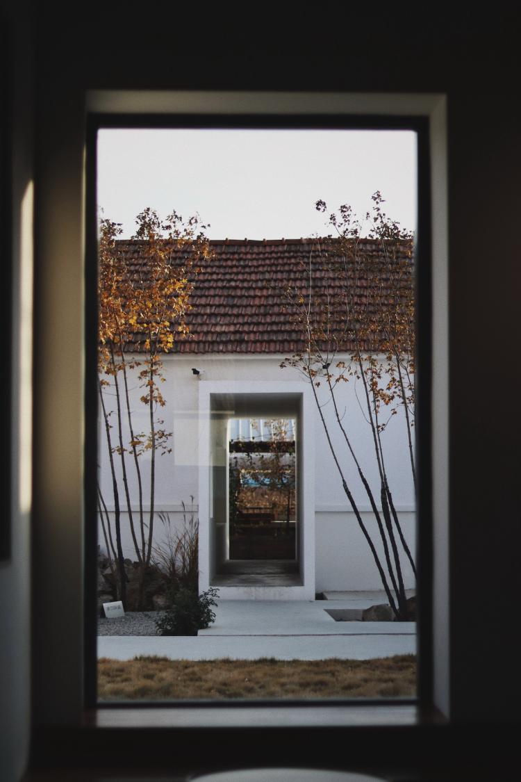保留院内原有的所有树木,以既融合又独立的关系使之与新构筑物和谐共存,老房子拆除和院子清理过程中挖出的石头,结合芒草、蒲苇、枝叶舒展的五角枫在院内的景观设计中就地使用,让它们以另一种姿态在这个空间中长久的存在下去。