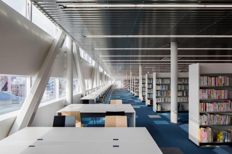 Librio行桥是一个以市图书馆为核心,同时具备市民文化活动中心与托儿所相关配套功能的综合设施。它在通过图书馆提高吸客能力的同时,还作为激发市中心活力的起点,将“活泼”与“安宁”等不同感受共享给到访的人们。
