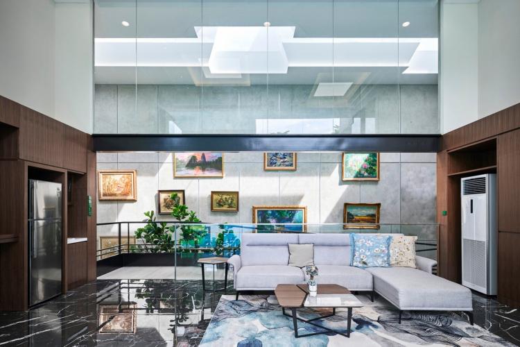 室内剪力墙为各种尺度的过渡空间提供了缓冲。过渡空间被植物分隔成一个从半私密到私密的空间序列。