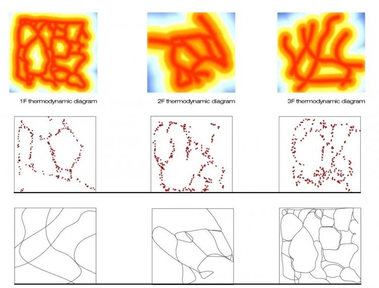 借助计算机算法,对已经归类的建筑单体进行大量的组合尝试,总结出单体组合的逻辑并将其转化为计算机组合的“语汇”以指导计算机进行空间组织,同时基于“蚁群算法”的整体流线结果对计算机空间生成进行控制。