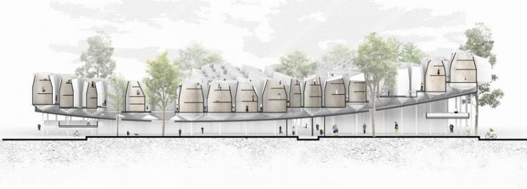 在我们的设计中,超级公寓中的每个建筑要素(街道、公共空间、露台、家)都有着尝试同时适应从开放到暂停的社区文化特征。