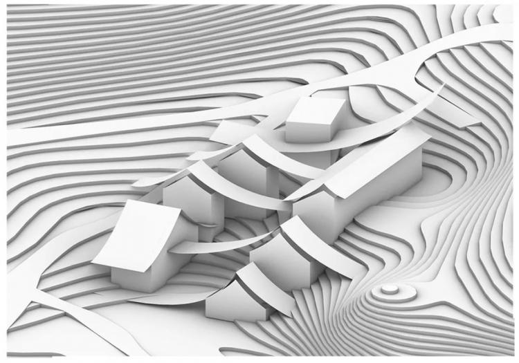 场地背靠高山,主要景观面有三个方向,采用分散的建筑体量并使其方向互相垂直会使景致更加均匀(也会让后来屋顶的编织更有秩序)。