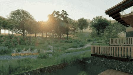 我选的地块位于群山环抱的凹地,消隐于茂密的山林当中,背靠栽满果树的陡山,远方之景为连绵起伏群山,近处一条溪流,自然格局开阔大气(说白了就是限定条件比较少,可以有更多的“自由发挥”了)。