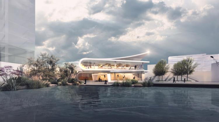 简洁优美,将光与景充分引入室内,一层将中轴广场设计元素成功融入建筑语言,既有统一,又有不同。二层设计较为巧秒,雕塑与建筑结合,充分展现了设计者的艺术修养,也是本次赛事少有的建筑雕塑结合设计。图纸细化了材质,可行性较高。