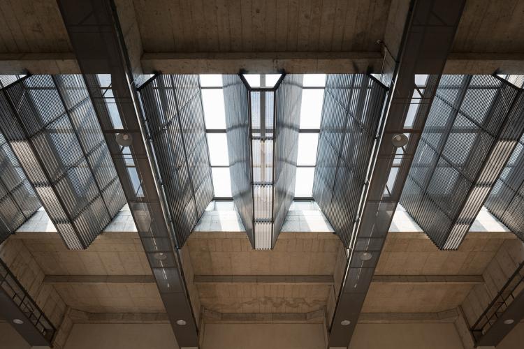 天窗下面的穿孔金属遮阳板,低技但有效整合了结构、管线、灯具和幕墙构造。为校园里这个最大的空间,提供了自然采光、自然拔风的被动节能方式,使它成为整个校园里最好用、最舒适、和最受欢迎的场所之一。