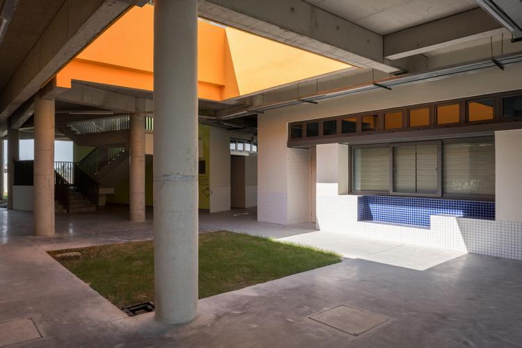 半开敞的廊道具备双层交通空间,同时也是课间活动的重要空间。