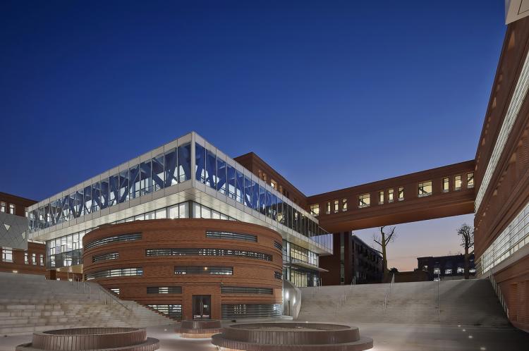 红色面砖是对校园文脉的呼应,而“面砖的舞蹈”使新建的教学楼具有独特的个性,体现了新建实验楼的时代气息,这种含蓄内敛的建筑品质是与我们向内寻找的高级知识分子的科研精神相契合的。