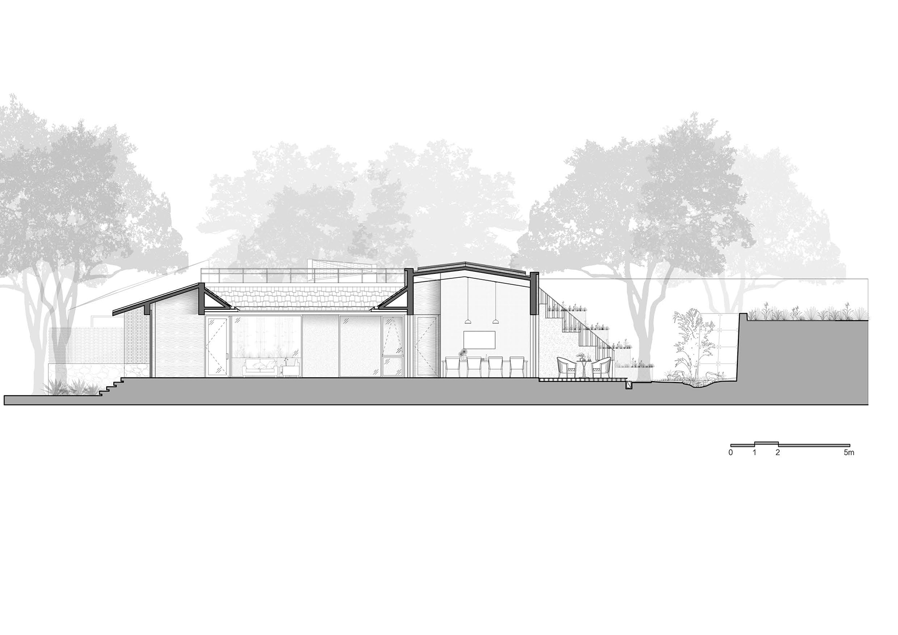 △ 从庭院望屋顶平台