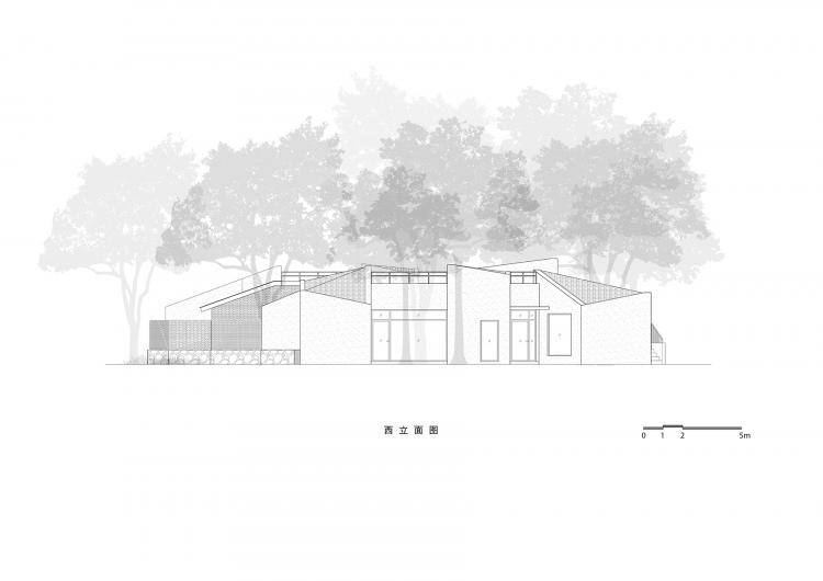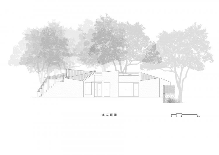 “零露”所在低矮地形上自然生长着14棵树木,它们述说着这片场所的过去与现在。原有树木不仅简单地被保留下来,而因“零露”的出现被真正显现于自然;在最大程度的尊重原有的自然风貌的同时,“零露”将生活空间延伸到自然之间,营造一种与自然和谐的自由栖居。