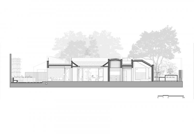 让住在这里的人们身处院子时感觉像是在室内,在室内时感觉身处院子,营造内外融合的空间。