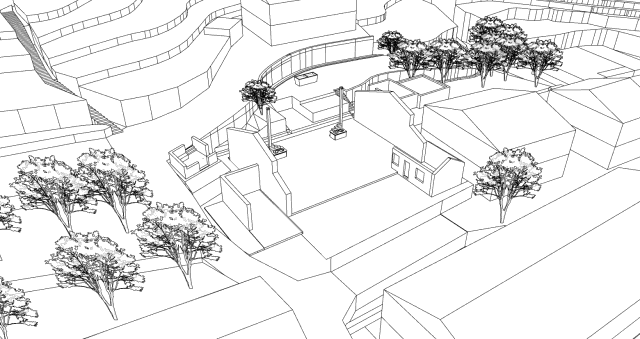 文化驿站的主体是村庄街道一侧闲置的一个院落,包括周边大大小小散落的偏房和一个蓄水池以及高度差1.8米的两片农田。