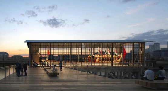 开发商U&I公司说,船屋可以为皇家划艇Gloriana提供一个永久性的停泊点,它是为女王2012年的钻石禧年庆典而建造的。
