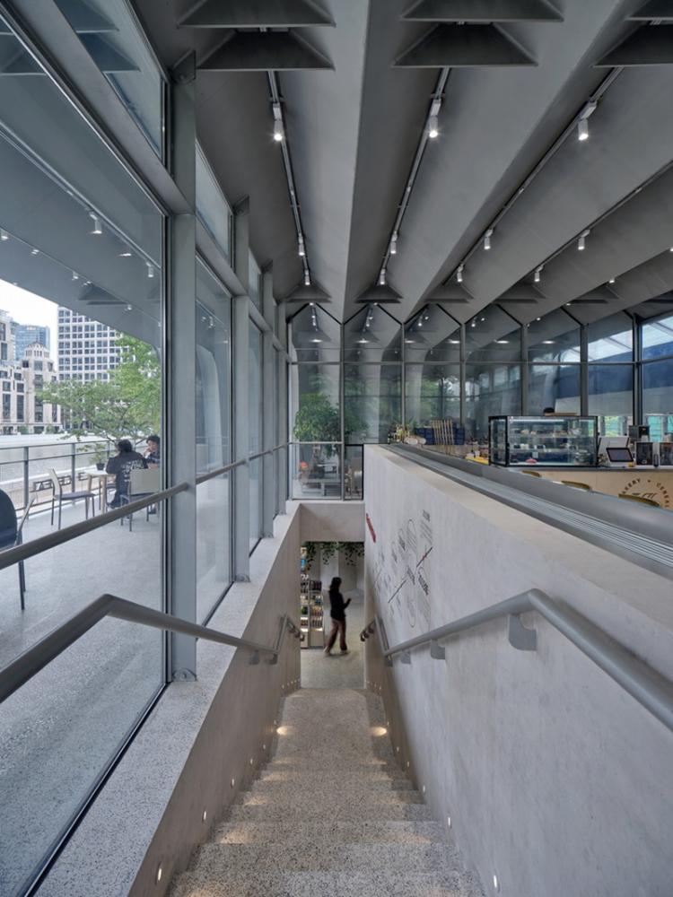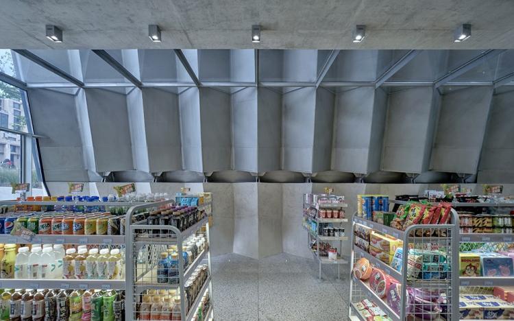加油站被命名为“苏河折”,结构和建筑形态一体化的方式使得,折板成为建筑最主要的特征,以结构理性为基础,复合了某种对于老建筑折墙的呼应,苏州河浪花的想象,以及折扇般的某种精致感。结构的纯粹性和意义的多义性赋予建筑当代的时代性,在这个富有历史记忆的场所,这种当代性,无疑是“文化加油站”最合理的注解。
