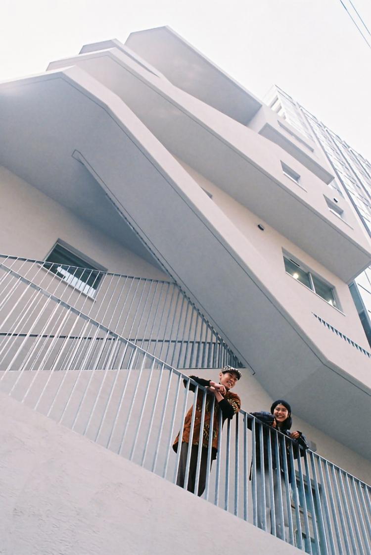 荒川大厦通过提出 "建筑形态 "和创新的结构方式解决了上述两个问题。外露的楼梯不仅成为休闲的场所,而且成为了应对城市的界面增添了的新的表达。该建筑充分利用了每一种建筑元素的潜力,现在将建筑使用者的活动作为建筑立面的一个元素展现出来。我们的意图是,融合了人类活动的动态立面也将为城市景观创造一种新的表达方式。