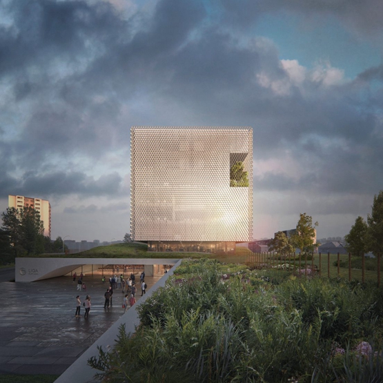 OODA建筑工作室为葡萄牙足球管理机构——“葡萄牙职业足球联盟”( Liga Portuguesa de Futebol Profissional ,即Liga Portugal)设计了一个立方体形状的办公楼和足球博物馆。上面有绿色屋顶。