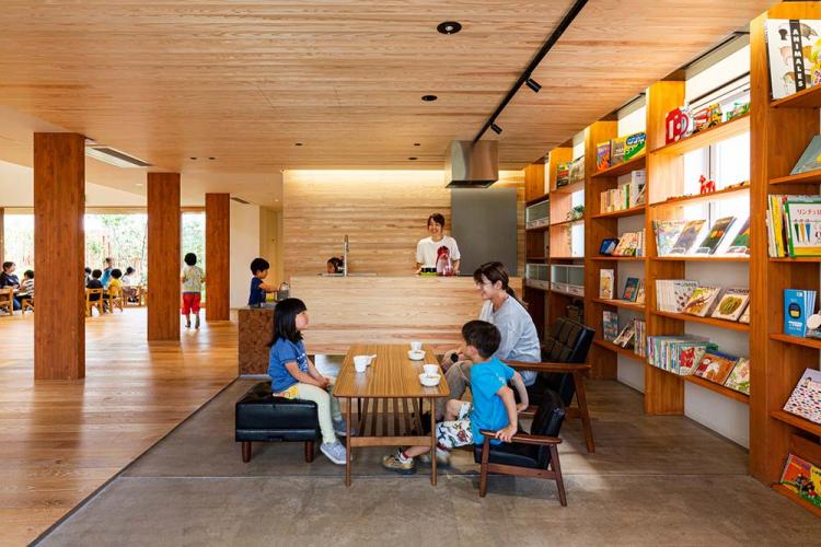 该设施有两个功能:一是作为0-3岁婴幼儿的蒙氏教育训练中心;另外还作为附近托儿所的游戏场地。秋留野市一半以上的面积都被森林覆盖,所以,该设施以概念“秋留野森林小屋”来设计。无论是儿童还是成人,都可以通过感受自然来培养他们丰富的敏感性和独立性。