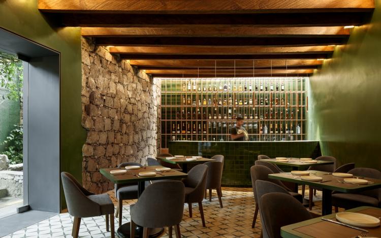 当您从Patzimba街上狭窄的门进入Santomate餐厅时,深绿色的门厅就像是在点头示意你建筑内部所能期待的种种。