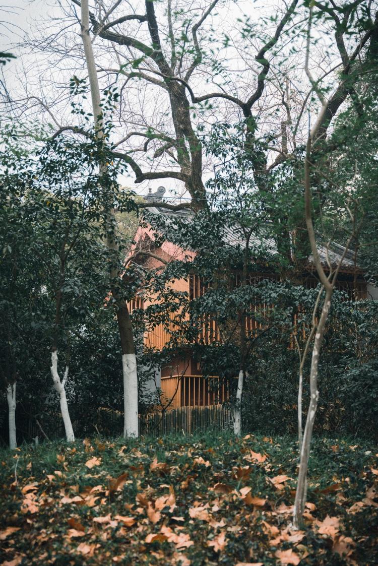原建筑北侧设计为博风立面,其博风样式和檐口起升的手法,让人联想到欧阳修所描述的意匠’有亭翼然临于泉上’。原建筑的屋面瓦因为风化的原因,在阳光下显出微微的宝蓝色,带给人一种意外的稳重感。项目所在的园林,八一公园,由明代分封到南昌城的宁王朱权始,就是当地胜景。