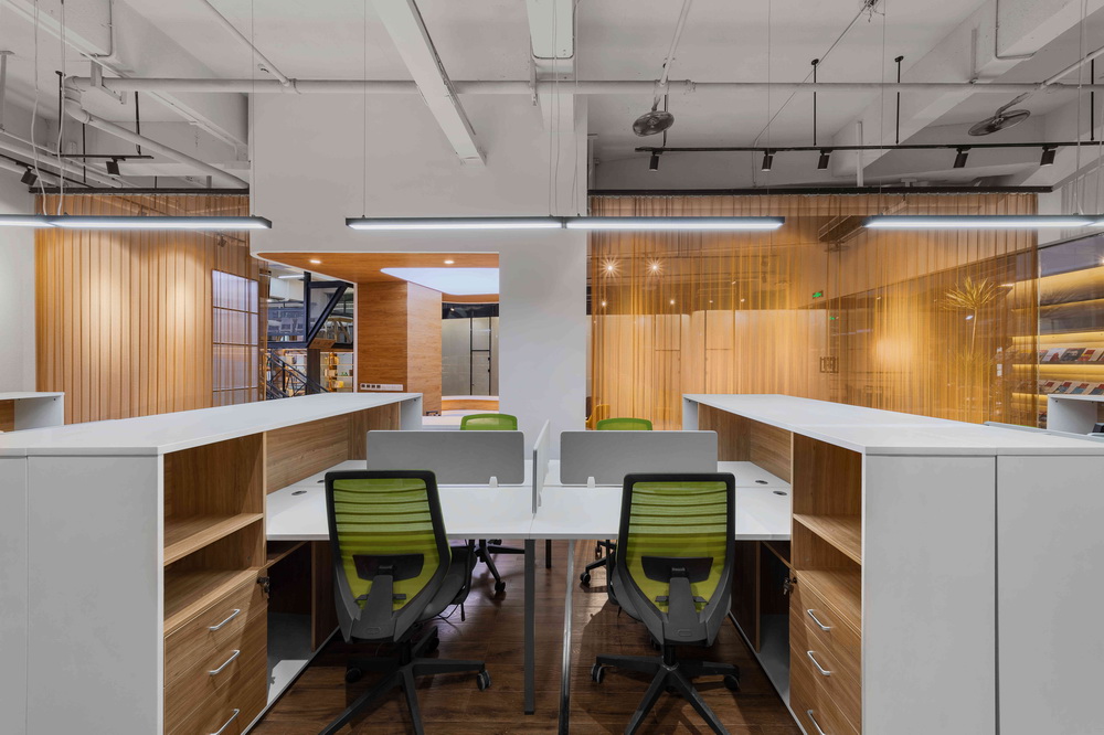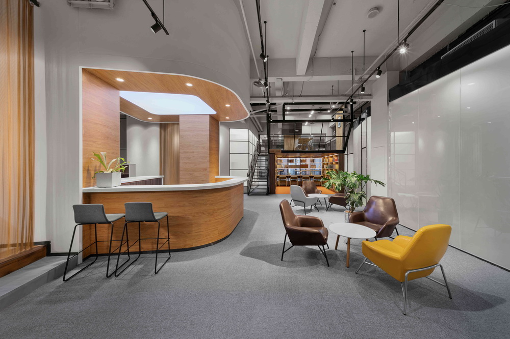 在洽谈区顶部,我们顺着原本的结构,重新规划出一所立于洽谈区和日常办公区之上的空间。大面积使用的透明玻璃开阔了整体视野。