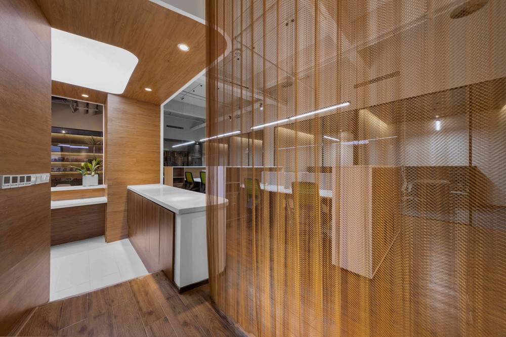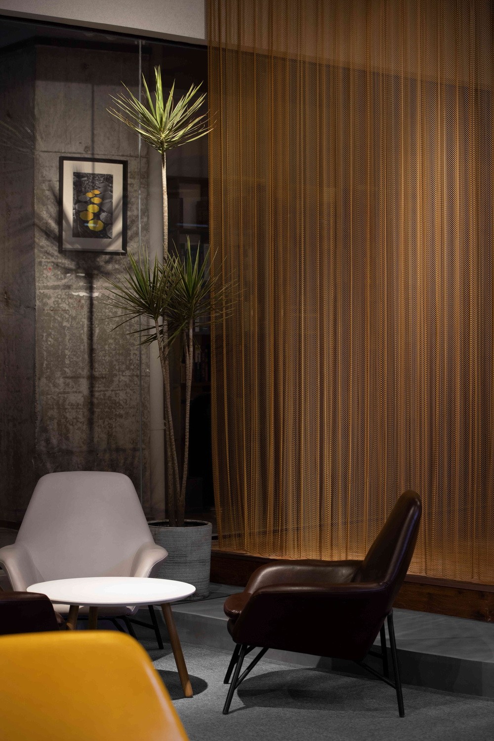 另外,在办公室和洽谈区的分离上,我们放弃了传统隔断,选择用金属帘代替门的作用。一面代表了律所的温度,一面代表了法律的严肃。关上它与拉开它,皆是未言。