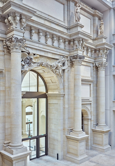 为了重建温柏(quince)色的外墙,雕塑家和石膏造型师重新创造了2800个人物和大约22000个不同的砂岩元素,包括窗户、飞檐和柱子。