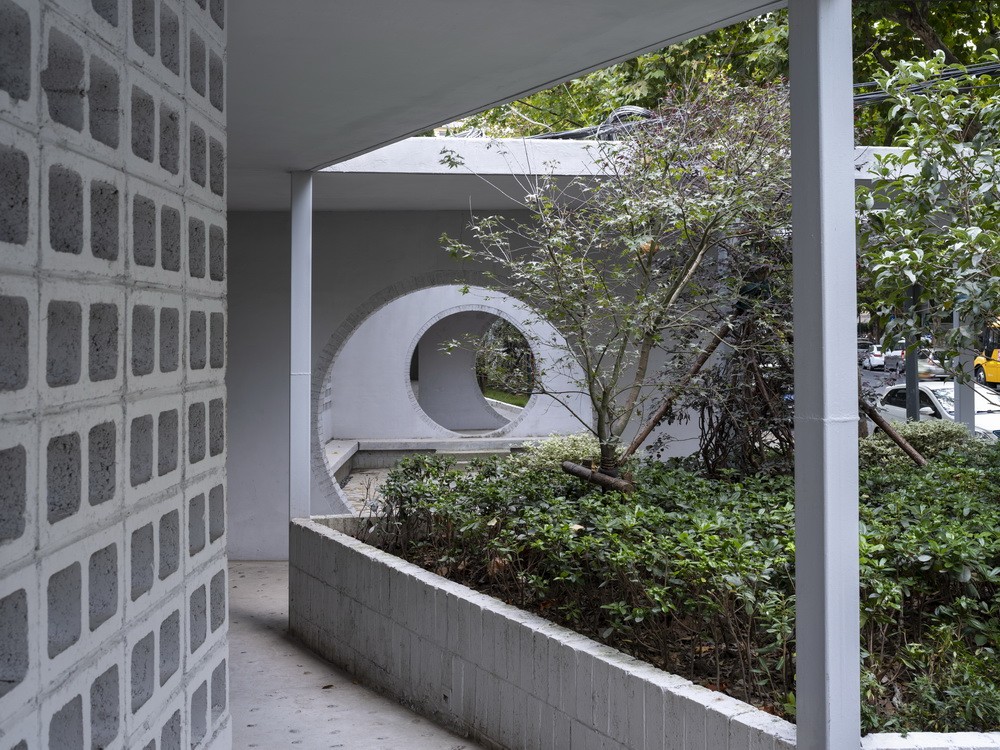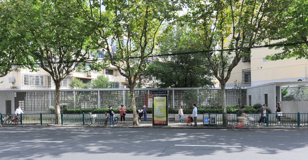 折线游廊在这一绿树浓荫处留出折角下沉院落,在人行道一侧花池内凹形成公交车候车区,原状的功能与景观均得以保留并嵌入街道生活从而得到呈现。