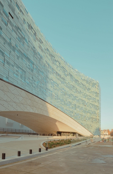 这个23000平方米办公楼的拱形设计,是为了回应位于现场正下方的Gare d Osterlitz地铁站的铁路线而演变的。