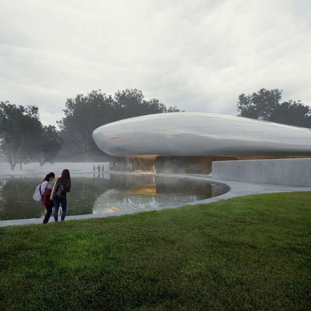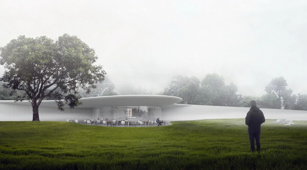 从远处眺望,便能看见“一朵漂浮在林中的云”。光洁的形体反射着天空和光的变化。