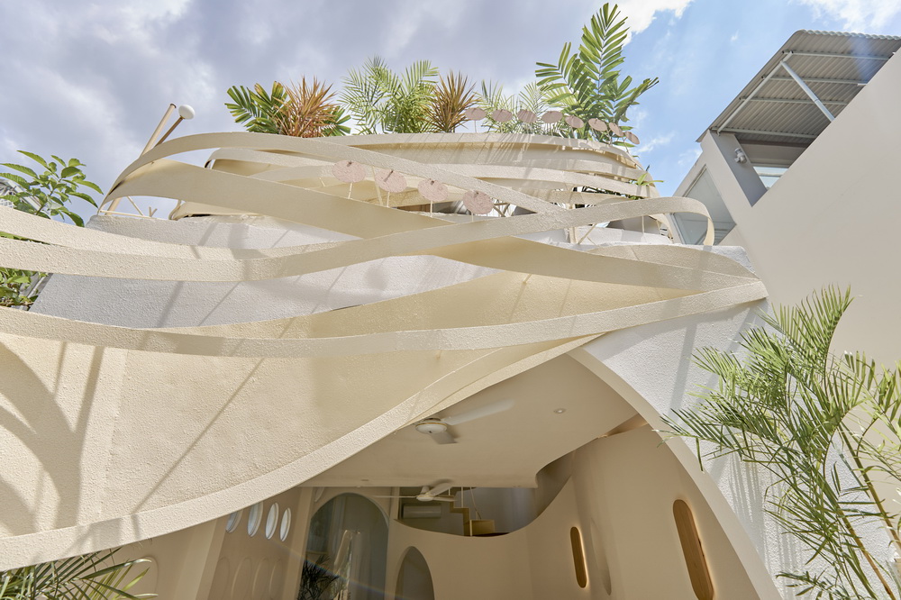 代表风的曲线元素则在天花板、墙面、地板上出现,如同把风带进每个角落般轻盈。