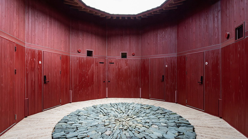 另一端的圆形结构是WHY酒店。它提供 4 个房间,每个房间可容纳 2 至 4 人(第一层设置两张床,第二层设置两张床)。简单的外观散发着和平的气息,中间有一个圆形的空间,与自然元素融合。