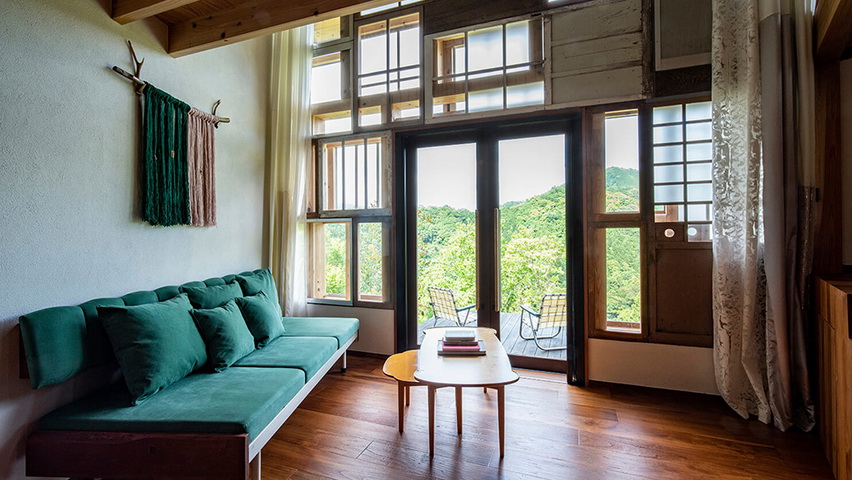 与上胜町当地企业的伙伴关系也很牢固。例如,提供给客人的早餐来自镇上当地的咖啡馆,窗帘是与当地工厂合作缝制的。