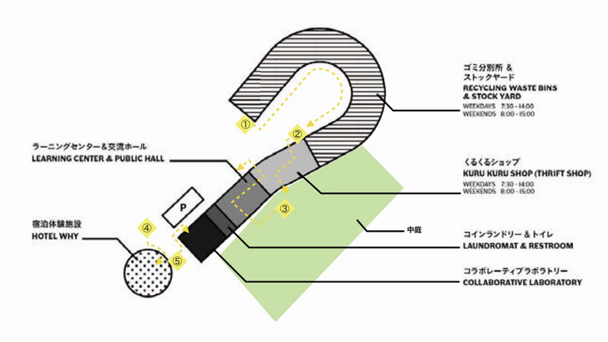 因此,Kamikatsu 的零废物中心被命名为“WHY”并非巧合。它提醒我们不断提问:我们为什么要买东西?我们为什么要使用它们?我们为什么要扔它们?我们(作为企业)为什么要卖东西?中心的问号结构是支持这种心态的深思熟虑的决定。