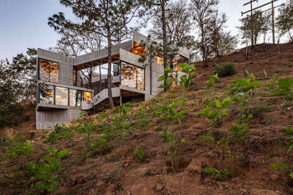 该项目的设计提案起始于将圣佩德罗卡约诺斯社区(San Pedro Cajonos)与瓦哈卡州诺特德山脉(Sierra Norte)的丝绸生产结合需求。由于该地区的地势并不平坦,项目中的每个体块都需要有着合适的位置与形态,也因此,建筑师创造出了两种空间模式:相互垂直或斜线相交的建筑平台。