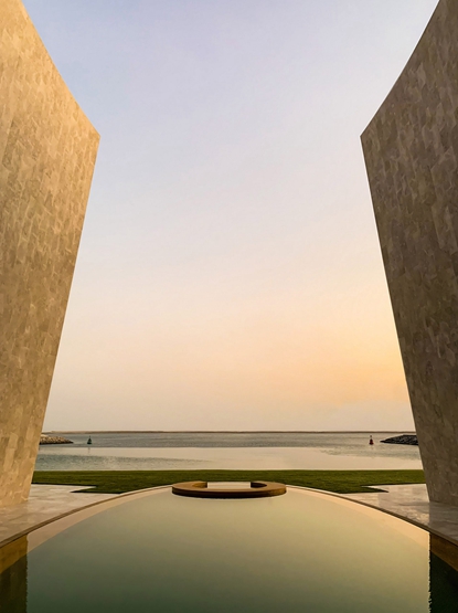意大利建筑师法比奥-诺文布雷(Fabio Novenbre)在阿布扎比的一个人造岛上设计了一座房子,这座房子环绕着一个面向大海的倒影池,入口被人工瀑布遮挡。
