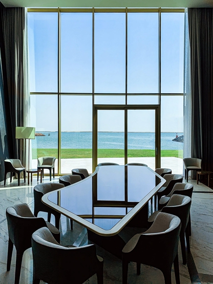 这座房子是为一位想要高度隐私的客户建造的,占据了阿拉伯联合酋长国首都阿布扎比以南的阿尔古姆度假村的一个人工小岛的全部。