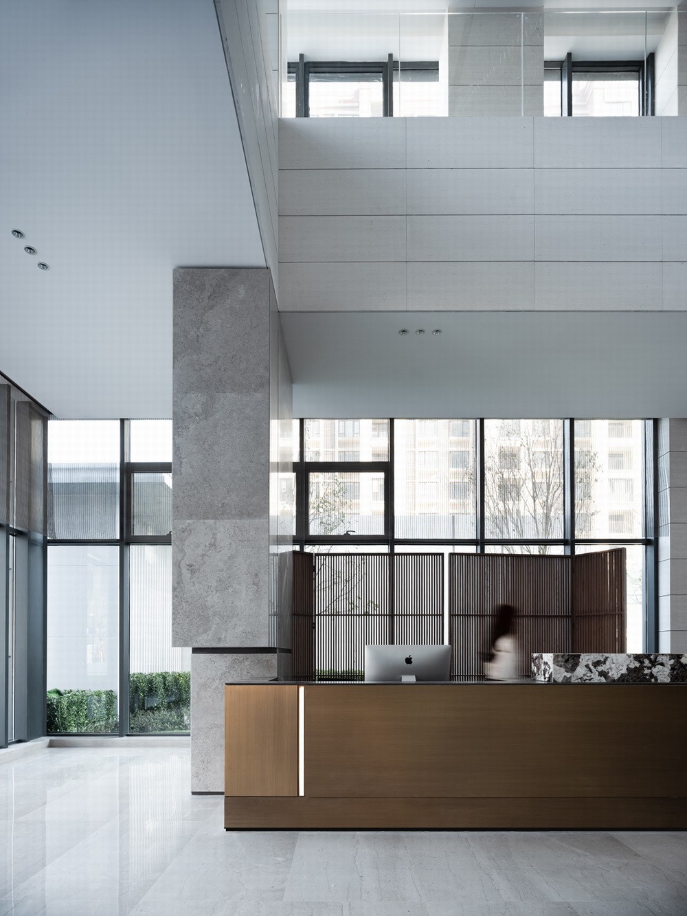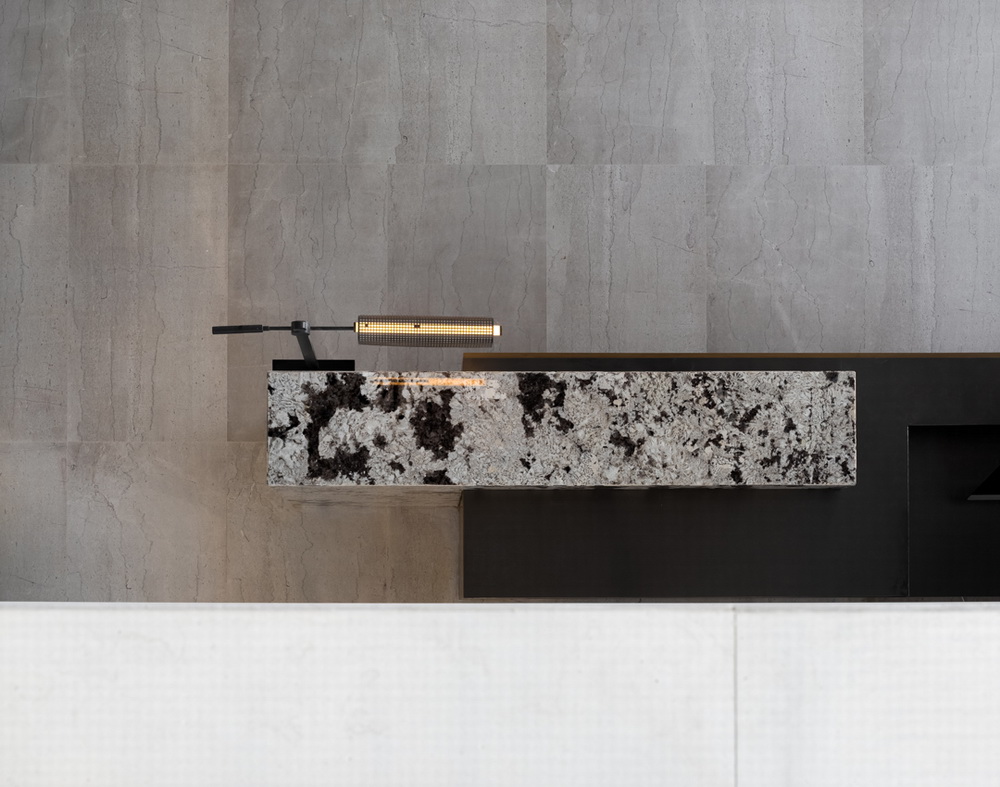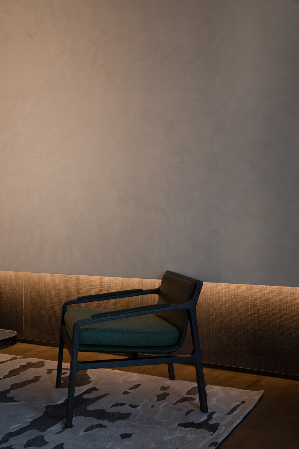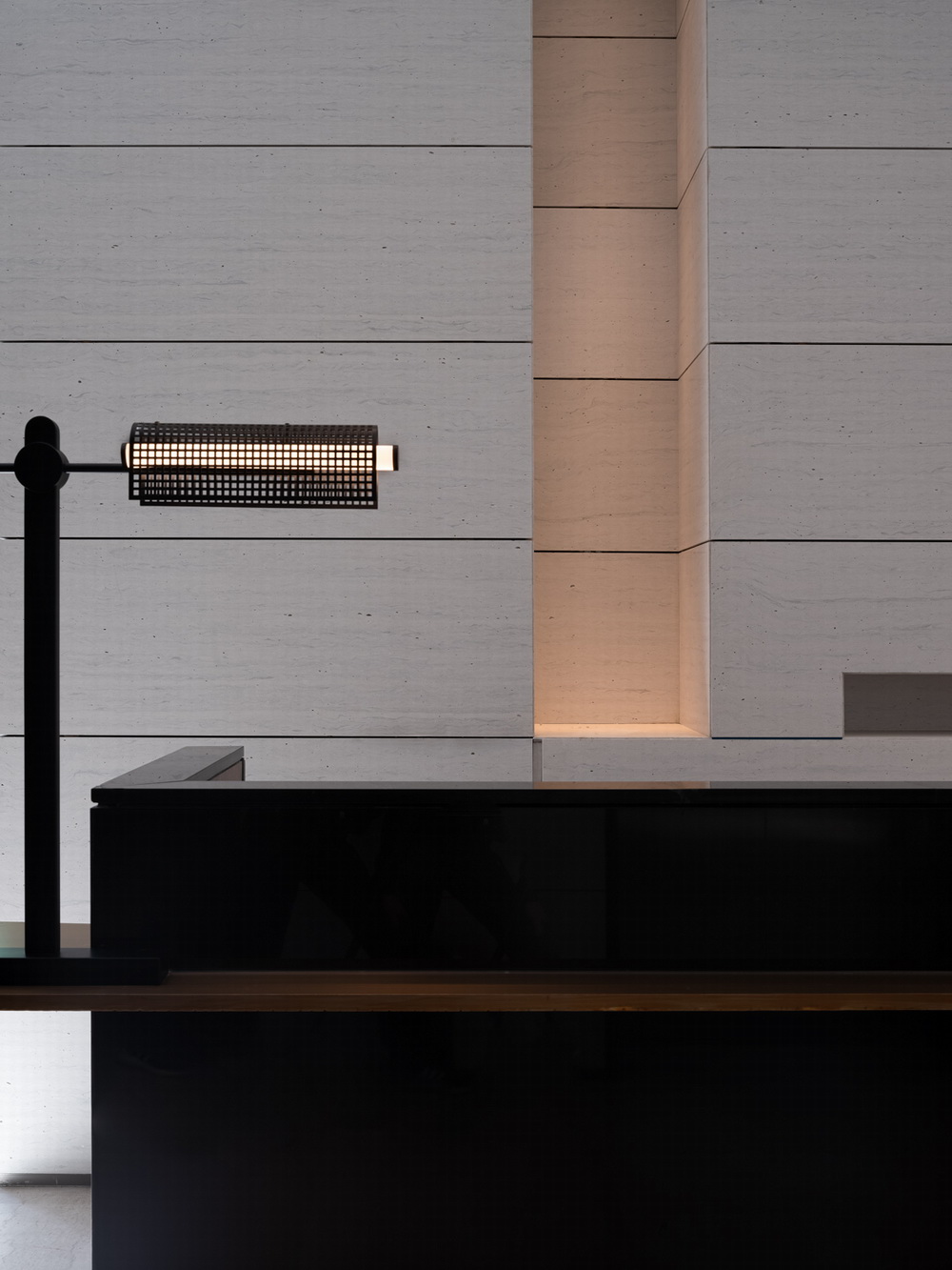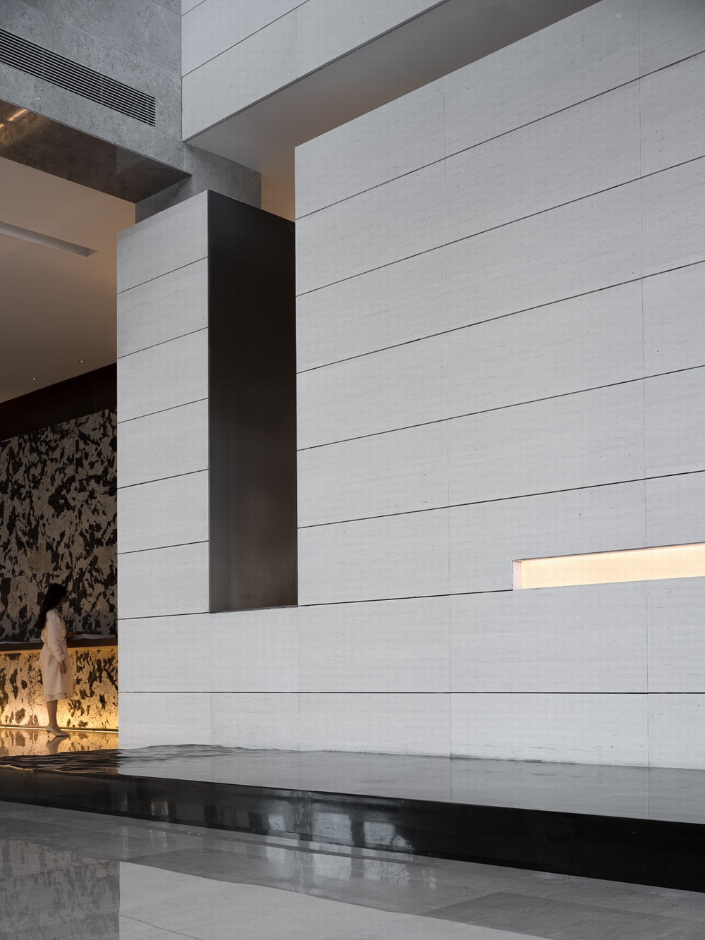 带有大胆纹路和强烈肌理感的石材在空间中或大面积伸展膨胀,直观地激发起人们对自然的联想;或局部点睛,活跃视觉节奏。整体间续贯穿后,给予空间沉稳又强势的张力。