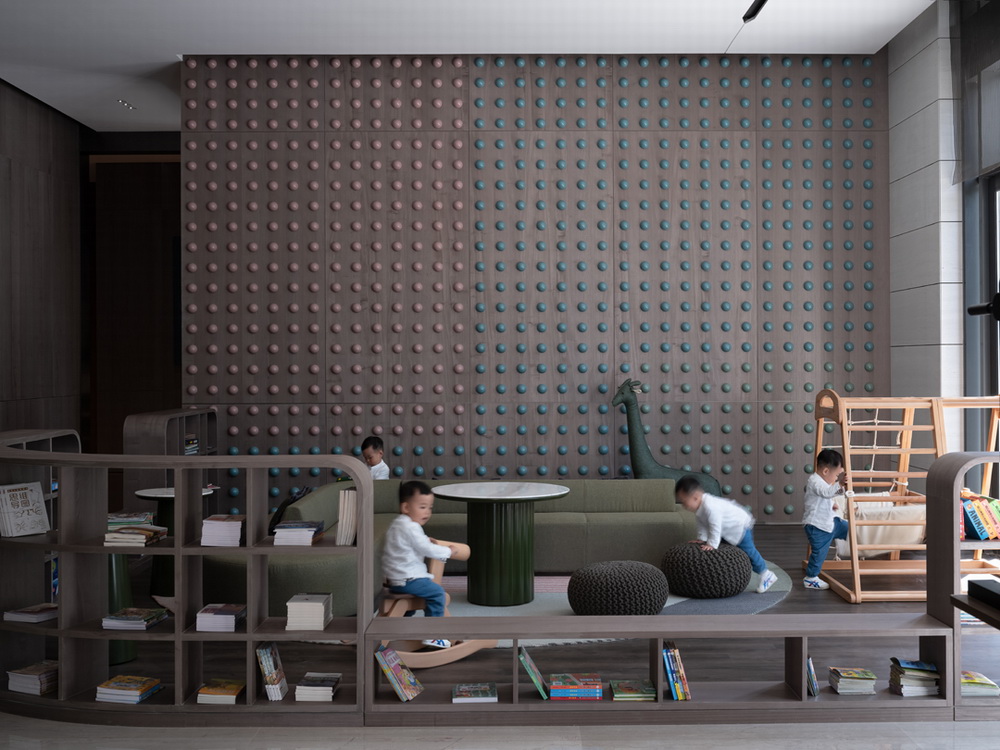 一层儿童活动区和二层业主活动区,都创造了一种“区隔与开放”兼容相通的氛围。