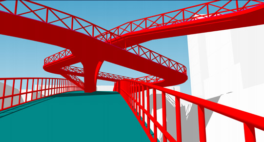作品编号:13号模拟大型桥梁的结构方式,以硬朗的线条让业主步行充满了动态的未来朋克感。总体造价过高,特别是悬挑结构处成本不菲。第3名-3