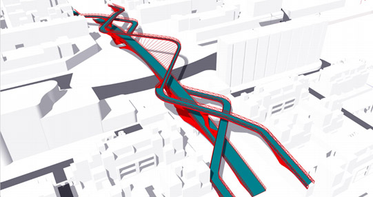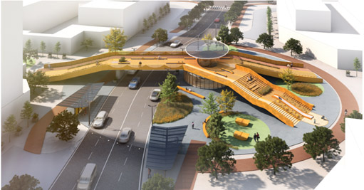 作品编号:21号植被与人流分别跨越城市车流,以生态连接了被分割的社区,具备移步换景的空间乐趣。外形美丽,此方案诠释颜值即正义,桥的功能性是基础,景观标志性也很重要。设计感比较柔和,缓和了城市道路的刚直。第2名