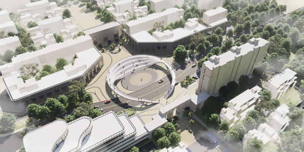 作品编号:14号作为横跨明德路的人行天桥,与城市街道有所对话,市民无论日夜、流动或静止,都能有效融入这个场所。充分利用了三四期的闲置空地,结合了广场的功能,让居民在其中产生共融。作者自述:我们非常看中北广场的大面积空间,我们希望这里有更多的可能性,希望这座人行天桥结合广场产生共融,作为激发3期和4期活力的重要节点。在保证交通、观景功能以外,我们设计思考的重点就是如何将北广场与人行天桥有机结合到一起,从而释放出无限的可能。形式上我们采用圆形,从而保留北广场的完整性,包裹出一个“内部”广场。将北侧的竖向交通面拉大并压低,这样整个竖向楼梯就与广场看台形成一体,广场就变成了舞台,桥就变成了看台,形成社区居民的公共活动空间和公共舞台,契合了我们小区的规划理念。通过桥底曲面支撑的处理保证了美观性和结构的可行性。结合周边建筑的色彩,我们用白色混凝土来浇筑整个桥体,使其与周边协调统一,相辅相成。另:由于本次报名参赛的作品众多,其中不乏很多优秀作品,为此我们增设了一个奖项,将为获奖作品颁发证书与奖杯。优秀作品奖