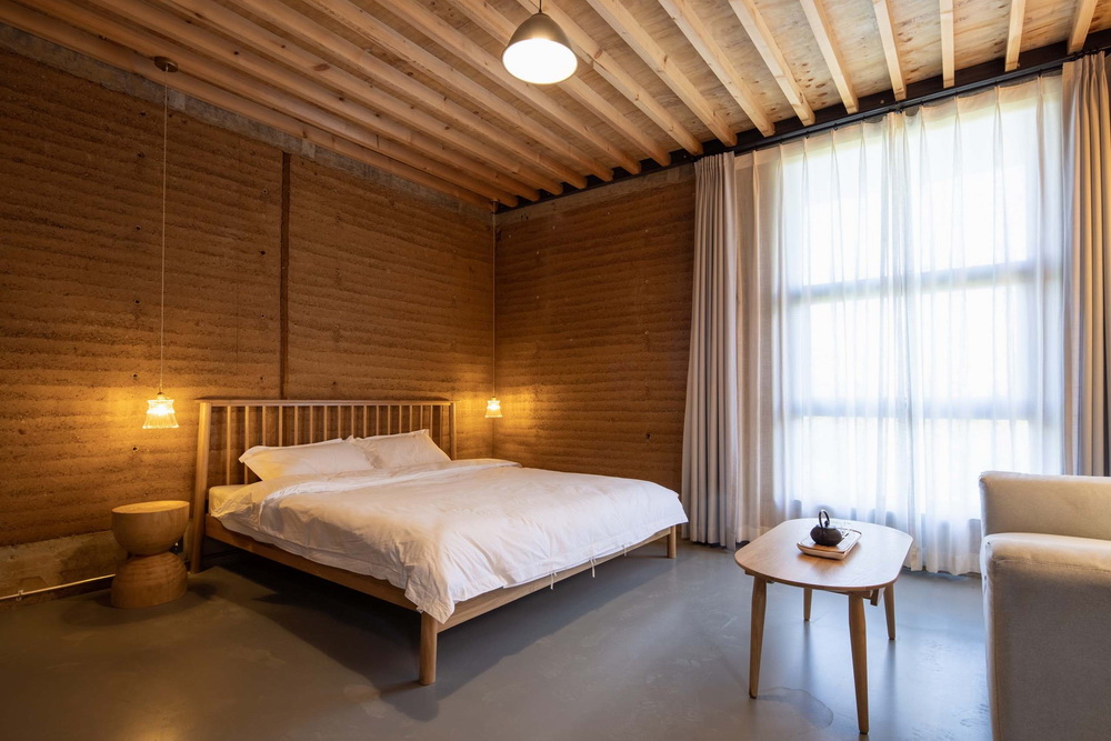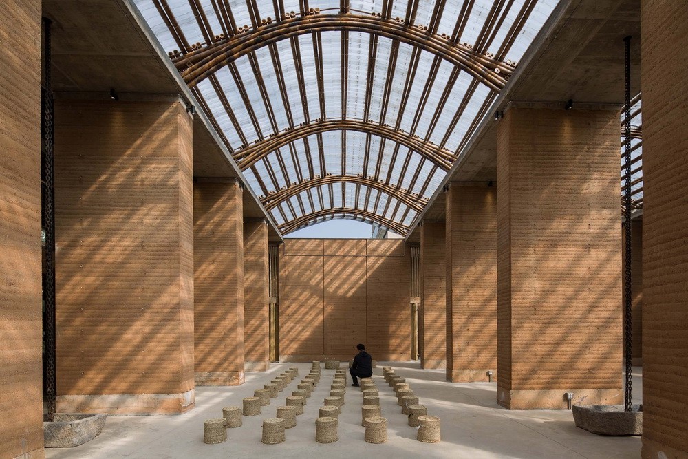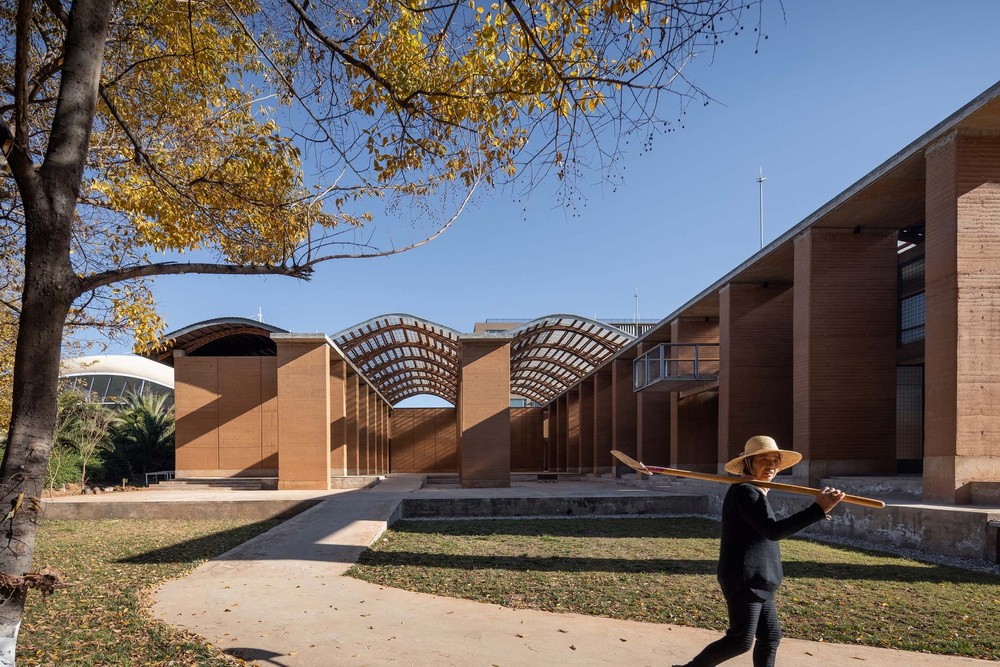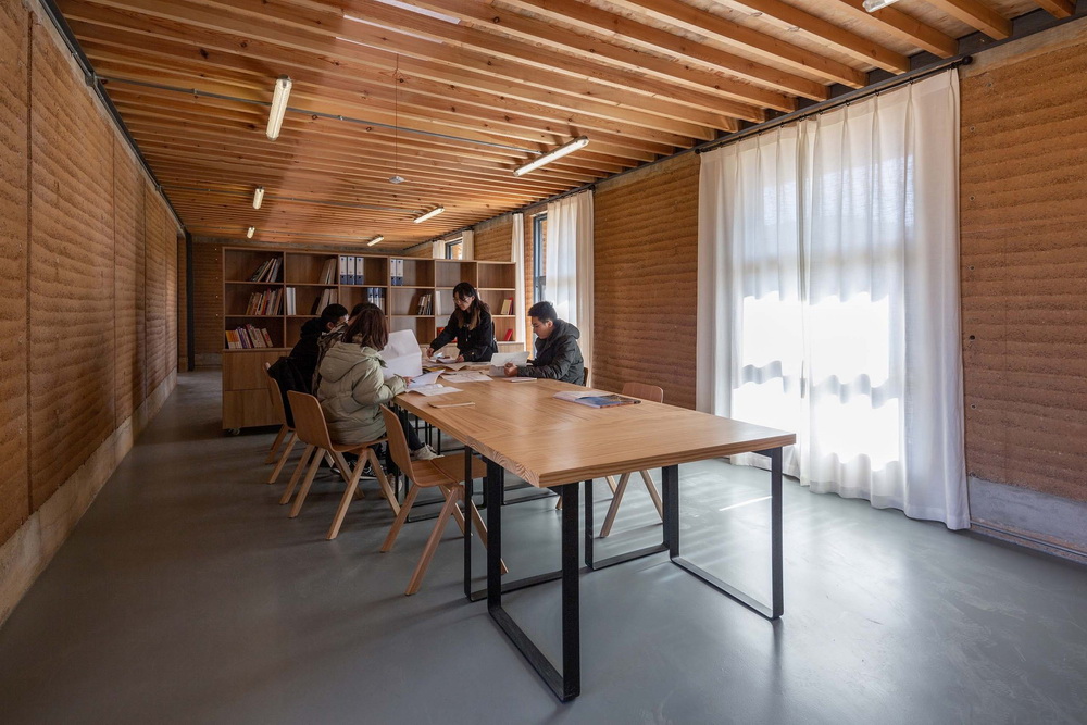 项目设计充分考虑了昆明的气候条件,带有顶部采光的半室外多功能空间为使用者提供了一个灵活舒适的公共区域,便于开展不同的培训和学术活动。夯土材料卓越的蓄热性能与自然采光、自然通风、适度遮阳等被动式设计相结合,确保了较高的建筑环境质量和极低的运行能耗。整栋建筑没有使用人工制冷或采暖设备。