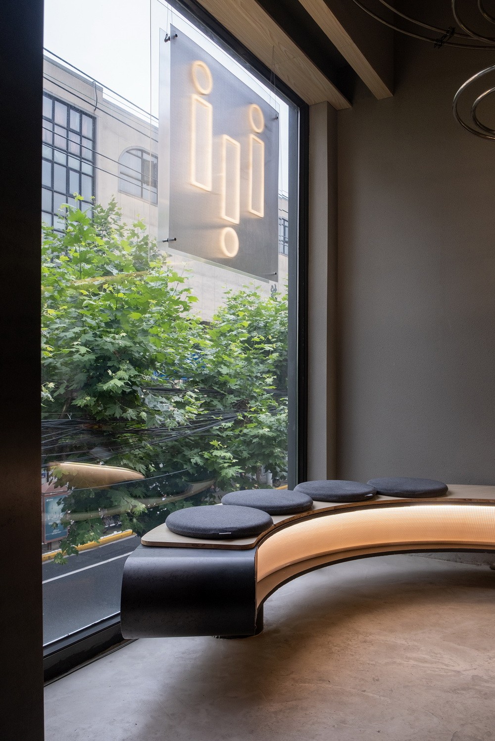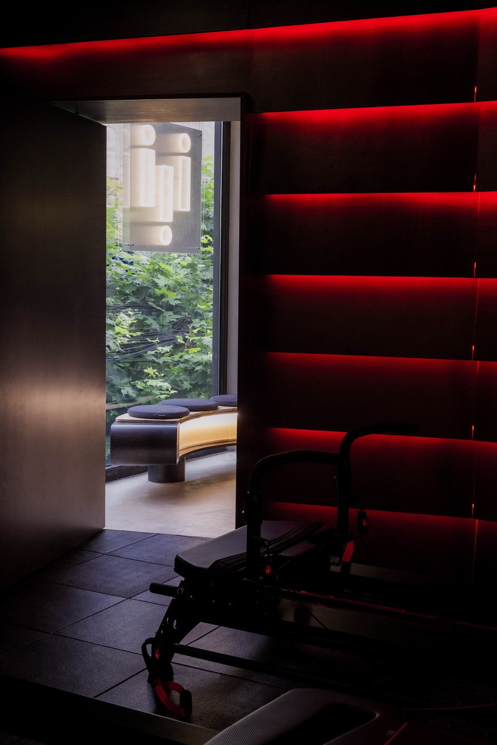 在保证独立训练的私密性同时还需兼顾与社区间良好的互动关系。设计利用原场地朝向街区的落地窗,提供运动者与外部的视线互动,以一种开放的状态,将独特的上海街区的生活环境引入店内。同时将品牌的空间形象融入街区,希望对社区注入更多活力。